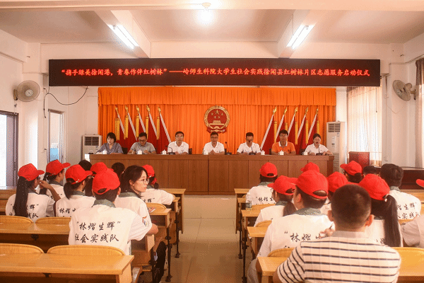 11日上午,岭南师范学院生命科学与技术学院服务湛江“红树林之城”建设大学生社会实践之徐闻红树林片区志愿服务启动仪式在徐闻县新寮镇政府举行。徐闻县自然资源局局长袁文韬,副局长陈鹏,徐闻县新寮镇副镇长陈家红,和安镇副镇长劳而收,生科院党委书记李发武,党委副书记覃静君,团委负责老师欧斯艳,志愿服务队指导老师田丽,李单凤及全体志愿队员参加启动仪式。