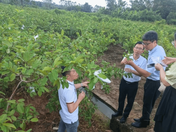 在廉江市上井种养专业合作社调研番石榴病虫害防治及取样