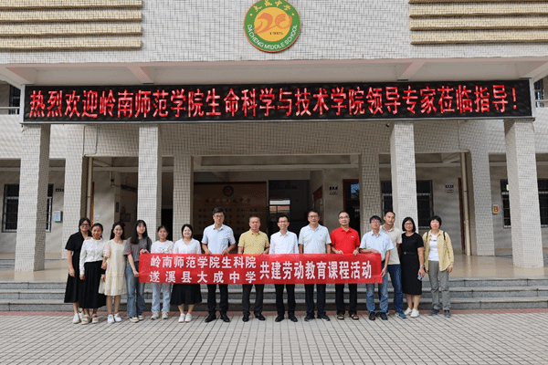 为贯彻落实好《广东省推动基础教育高质量发展行动方案》(粤府[2021]55号)和《岭南师范学院赋能基础教育高质量发展行动方案》,推动生科院与遂溪县大成中学的基础教育高质量发展结对帮扶工作,10月13日下午,生科院院长刘锴栋,教学副院长孙余丹,生物科学系教师余小杏、生物技术系教师张鸿雁、实验员教师梁光明等一行五人赴遂溪县大成中学参加广东省示范性教师教育实践基地授牌仪式暨劳动教育课程共建活动。