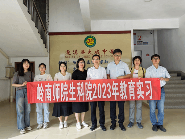 为切实了解教育实习的落实情况,确保实习工作有序进行,进一步加强对实习工作的管理与指导,于10月13日下午,生科院院长刘锴栋,副院长孙余丹,生物科学系教师余小杏、生物技术系教师张鸿雁、实验员教师梁光明等一行五人赴遂溪县大成中学开展教育实习走访检查,看望学院2020级生物科学专业实习生。
