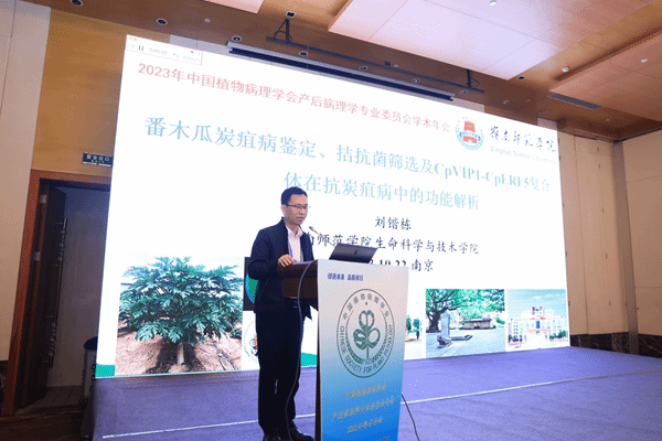 为了促进我院相关研究良性发展,加强学术交流,促进科技创新和人才成长,生科院院长刘锴栋教授以及热带园艺作物病理研究团队张鸿雁教授、吴天利博士赴江苏南京参与了会议。刘锴栋教授在会议上做了“番木瓜炭疽病鉴定、拮抗菌筛选及CpVIP1-CpERF5复合体在抗炭疽病中的功能解析”的专题报告。张鸿雁教授和吴天利博士与参会单位人员开展了热带园艺作物产后病理学研究方面的交流。