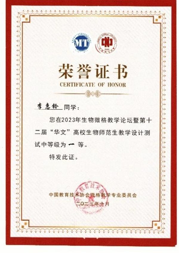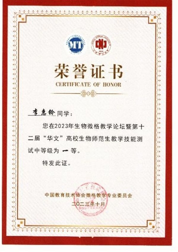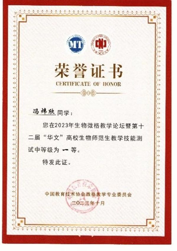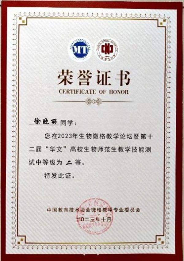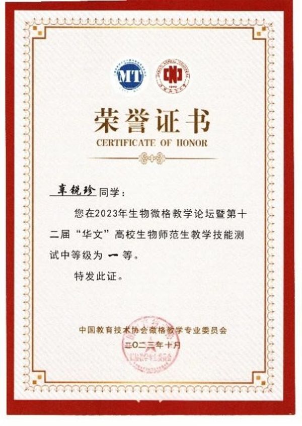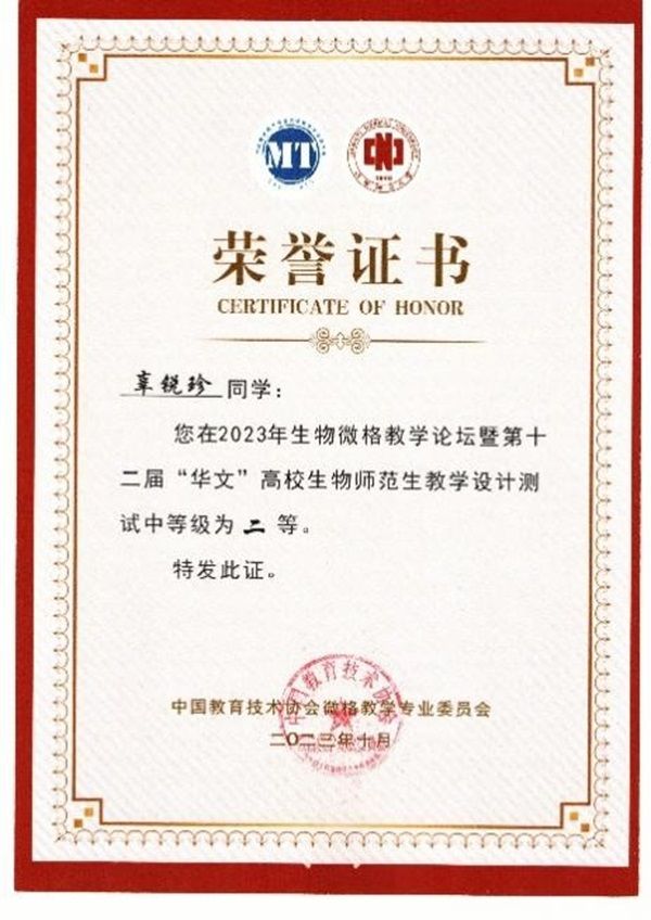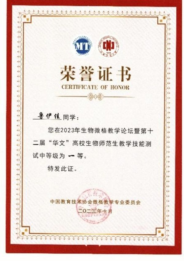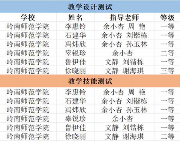 经师生的共同努力,我院学子在此次比赛中硕果累累,斩获教学设计测试一等奖4项、二等奖1项、三等奖1项;教学技能测试一等奖5项、二等奖1项的好成绩!