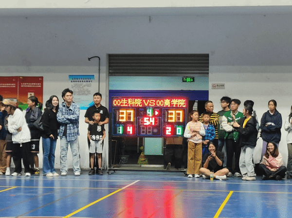时间慢慢流逝,现场观众的热情愈发高涨,比赛也来到了最激动人心的时刻。前三节比赛结束后,生科院以12分的差距落后于商学院,但女篮队员们没有气馁,抗住巨大的心理压力,不断追逐得分。当时间还剩54秒时,生科院将分差缩小到两分。此时,场上的气氛更加紧张,球员们的动作也更加激烈,双方的进攻与防守都更加谨慎,用尽全力去争夺每一个球权,争取每一个得分的机会。离比赛结束还有5秒时,7号球员严思梦躲过对手们的夹击,奋力一跳,投入关键的两分,比分追平了!全场沸腾,球场上的观众爆发出了热烈的掌声和欢呼声。对手心理素质同样很强大,最后5秒以球权优势,一个三分球绝杀,生科院惜败。