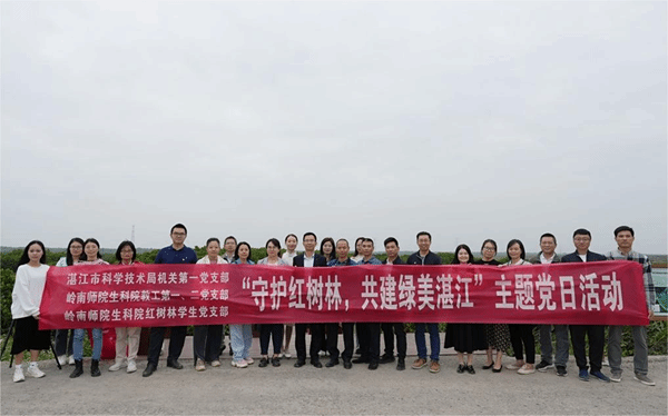 11月30日,湛江市科技局机关第一党支部、岭南师范学院生命科学与技术学院教工第一党支部、教工第二党支部以及生命科学与技术学院红树林学生党支部于湛江市麻章区金牛岛红树林片区联合开展“守护红树林,共建绿美湛江”主题党日活动。