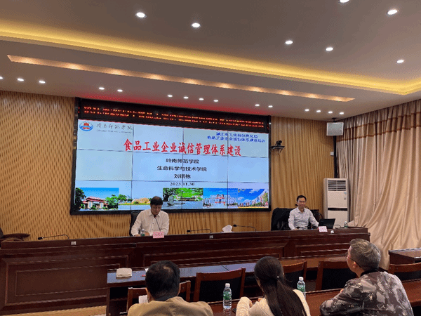 11月30日,湛江市工业和信息化局召开湛江市食品工业企业诚信管理体系建设培训会。生科院院长刘锴栋教授受邀作题为“食品工业企业诚信管理体系建设”的专题培训讲座。湛江市各县(市、区)工业和信息化主管部门、湛江经济技术开发区经济贸易和科技局、湛江奋勇高新技术产业开发区经济和科技促进局的负责人代表、辖区内食品工业骨干企业从事生产技术或质量管理的负责人参加了本次会议。会议由湛江市工业和信息化局副局长庄兆杰主持。
