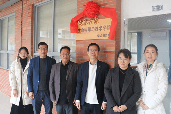 为凝聚校友力量,携手共助学生发展,2023年12月22日,由我院优秀校友、学校东莞校友会会长刘国健捐赠装修的“纯衣世家”生科院学术报告厅建成揭幕,同时刘国健校友“纯衣世家”爱心基金资助学生暖心座谈会也在我院举行。生科院校友刘国健,生科院党委书记李发武、院长刘锴栋、党委副书记覃静君,生科院学工办副主任、校友服务中心指导老师潘晓艳以及生科院勤工学贷中心指导老师梁韫怡和受资助学生代表出席。