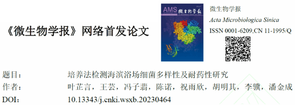 近日,我院王芸博士带领课题组成员分别在《生态学报》和《微生物学报》杂志上发表了题为“六种海桑属红树植物根际真菌特征及其影响因子研究”和“培养法检测海滨浴场细菌多样性及耐药性研究”两篇研究论文,18级海洋资源开发技术专业李传恩和20级生物技术专业叶芷言分别为文章第一作者。课题组主要从事嗜盐微生物资源与生态学相关研究。