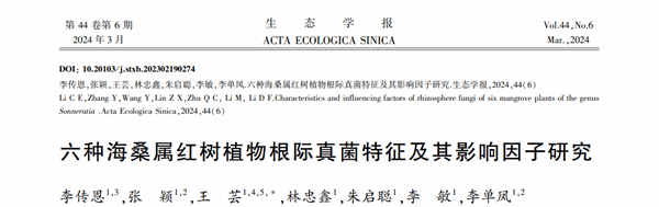 真菌多样性是植物根际生态系统的重要构成与植物健康稳定的重要指标。海桑属是红树林中重要的乔木型树种,树形高大,几乎遍布红树林各种类型的潮间带,在红树林生态系统中占有重要地位。目前关于海桑属植物,我国学者主要从木材结构比较解剖、木材结构及其系统演化意义、叶片的结构及其生态适应性、孢粉学、形态解剖学、分子标记、遗传多样性等方面做了一系列研究,对影响海桑属红树植物生长发育的根际微生物知之甚少。该研究探究了海桑属红树植物根际真菌的群落多样性规律,并分析了红树植物根际真菌类群的生化功能,为该物种资源保护与合理利用、种群恢复工作提供理论基础和依据。