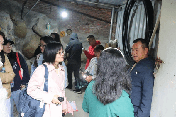 老师们对塘蓬镇上山村示范带特色民族村开展护绿调研活动,村支部揭慧主任热情向老师们介绍上山村的产业特色和发展情况,带领老师们参观了塘蓬上山甘泉水厂、米酒坊和茶园,并进行深入交流。