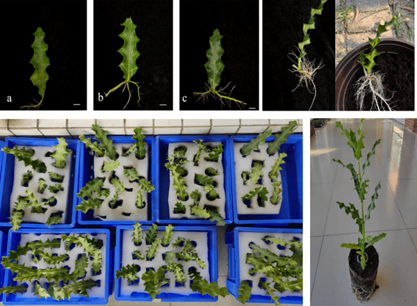 在气候变化和人为干扰的双重压力下,我国小花老鼠簕野生种群分布较少,根据IUCN(世界自然保护联盟)评估标准,其已处于濒危状态。由于生境受限,小花老鼠簕自身繁殖和扩展的能力较差,而且落花落果现象十分严重,而人工育苗能够有效改善其濒危状况。传统的枝条扦插对植物会造成毁灭性的伤害,这对本已处于濒危状态的小花老鼠簕而言不是很好的育苗方法。研究团队经过摸索发现可以其叶片为插穗进行人工育苗,能够在实现育苗效果好的同时极大地降低对母树的损伤。该发明专利不仅解决了小花老鼠簕种质资源繁育的问题,还为濒危红树植物生态保护修复提供技术支撑和苗木基础。