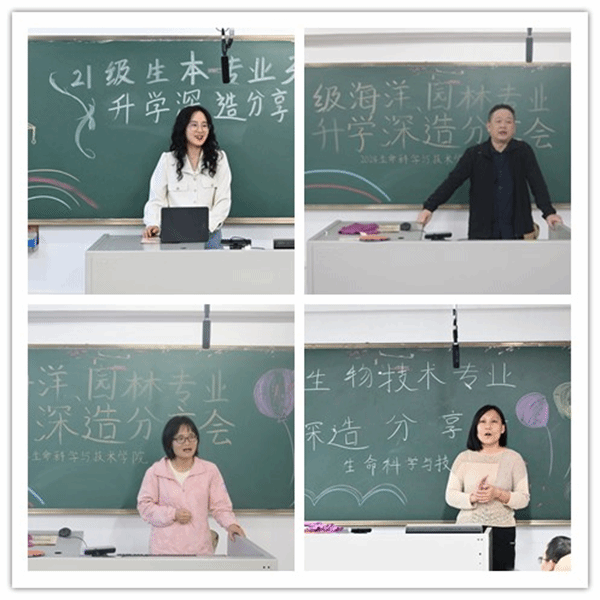 生物科学系主任周艳、海洋资源开发与技术系主任杨长庚、生物技术系主任冯瑜菲、园林系主任成夏岚和各班主任及教师们希望同学们能够积极向上,引用鲁迅的话“愿中国青年都摆脱冷气,只是向上走,不必听自暴自弃者流的话。能做事的做事,能发声的发声。”鼓励同学们要有所作为,要为社会发光发热。