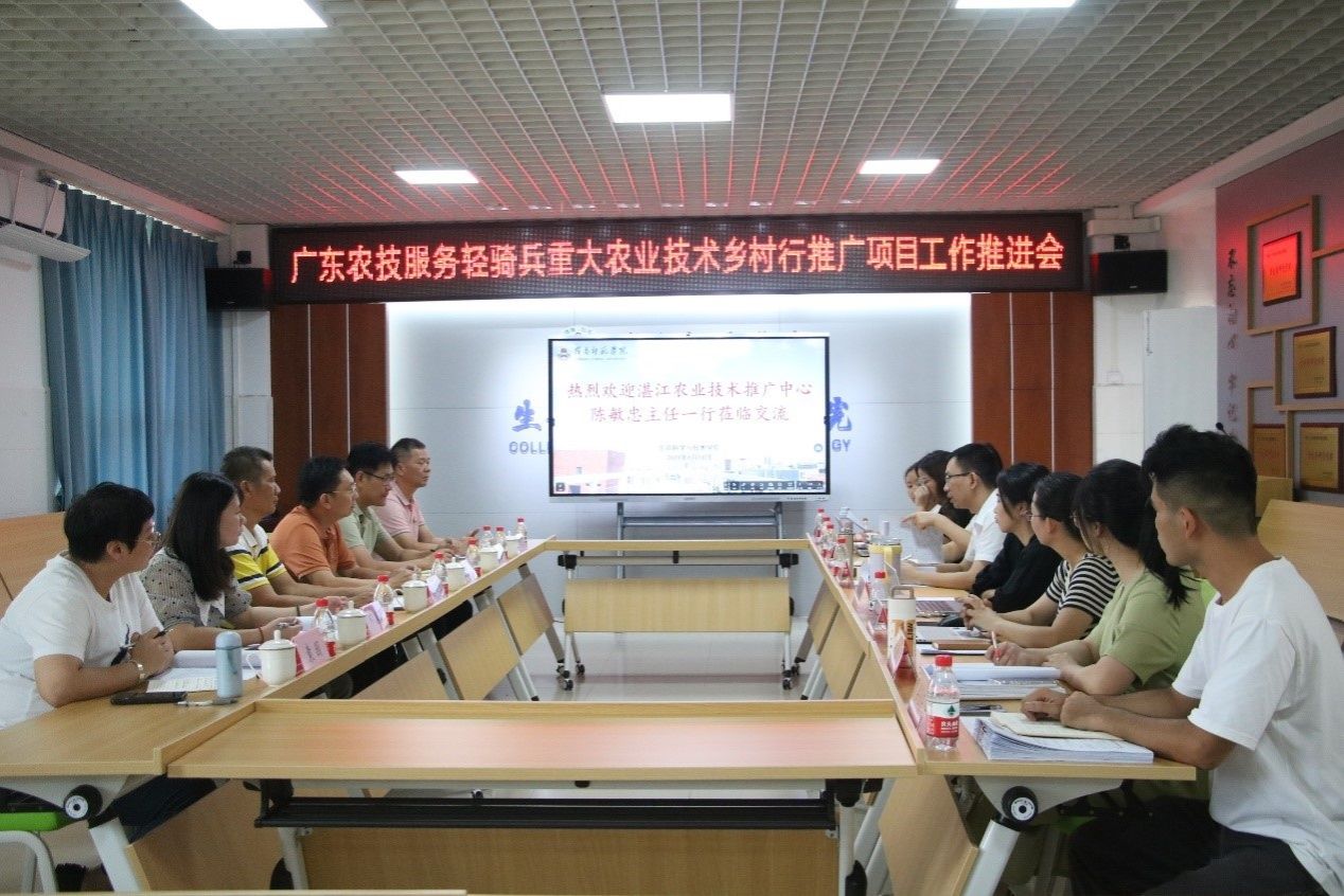 6月18日,湛江市农业技术推广中心陈敏忠主任携中心技术骨干一行6人到生科院开展调研交流。会议于第四教学楼E507会议室召开。生科院院长刘锴栋、生物技术系专业负责人张鸿雁、生物科学系主任周艳、朱胜男博士、吴天利博士、丁美玲博士、梁金荣老师、李晓菲老师参加了交流会。