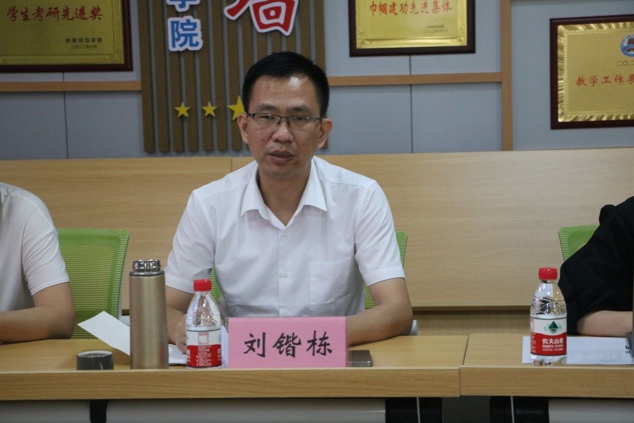 刘锴栋院长首先代表生科院向湛江市农业技术推广中心一直以来对学院的关心支持表示衷心的感谢,并向湛江市农业技术推广中心陈敏忠主任一行专家介绍了岭南师范学院的发展历史、生科院的师资队伍、学科建设、科研成果等基本情况。近年来,双方围绕现代农业创新和“百千万工程”开展了广泛有效的资源共享与技术合作,特别是技术推广服务方面,受到了省农业技术推广部门的高度肯定,双方联合申报的广东农技服务轻骑兵重大农业技术乡村行推广项目获得立项。希望今后双方在人才培养、技术研发、科技成果转化等方面进一步深化交流合作,不断丰富拓展合作内涵,共同打造校地合作典范,推动校地合作再上新台阶。