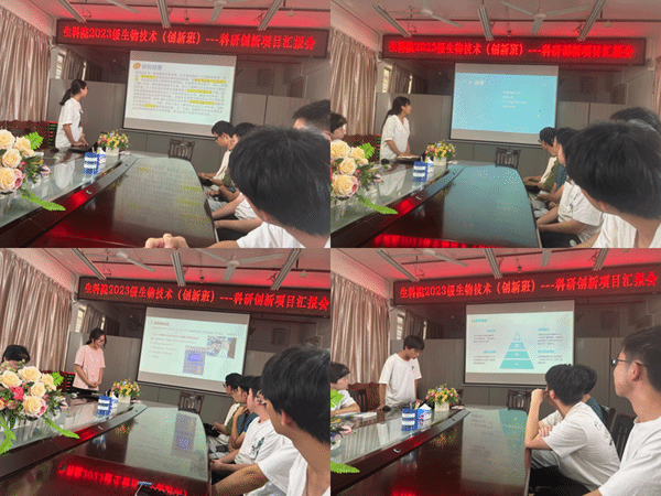 为进一步强化生物技术专业创新班建设,培养一流拔尖人才,激励同学们深度参与科研创新训练,6月28日下午,生科院在教四D505召开2023级生物技术(创新班)科研项目汇报暨学年总结会。学院院长刘锴栋教授、生物技术系主任冯瑜菲副教授以及科研创新项目导师潘进权、饶颖竹、卢翔等老师莅临会议并指导。