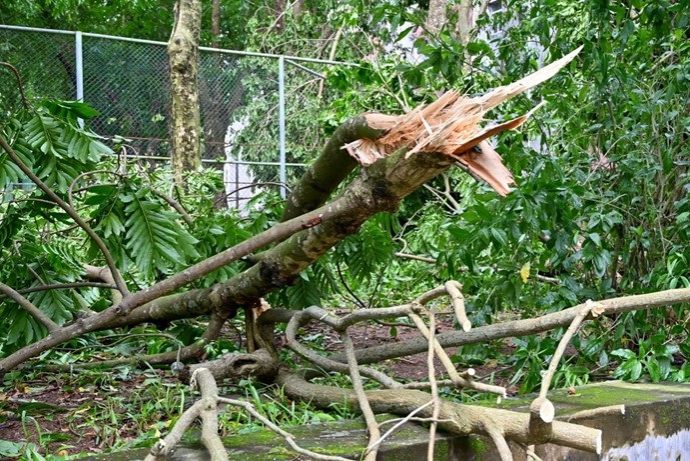 2024年9月7日上午,在台风“摩羯”的狂风暴雨肆虐过后,岭南师范学院校园内部分树木东倒西歪,个别更是树木被连根拔起,横亘在校园的道路上,树枝树叶满地,不仅阻碍了交通,也严重破坏了校园的美观。如果不及时清理校道,将会影响到2024级新生的报到,生命科学与技术学院的党员们根据校党委组织部《关于在防御台风“摩羯”中充分发挥基层党组织战斗堡垒作用和广大党员干部先锋模范作用的通知》要求,积极投身于校园的清理工作,以实际行动展现了他们的责任与担当。