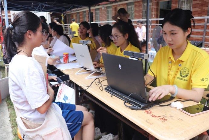 助理班主任为新生办理入学手续
