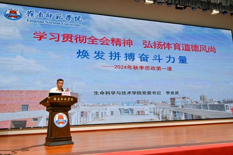最后,李发武以《学习贯彻全会精神,弘扬体育道德风尚,焕发拼搏奋斗力量》为主题,为2024级新生上了一堂生动而深刻的“思政第一课”。李发武首先向新生们阐述大学使命,然后传达学习党的二十届三中全会精神,通过与大家分享巴黎奥运会中国代表团的体育精神,鼓励新生挑战自我,追求卓越。他还带领大家学习领会新时代教育理念,寄语新生老实做人、踏实做事、勤奋好学。生动的思政第一课,将深深地烙印在了每一位新生的心中。