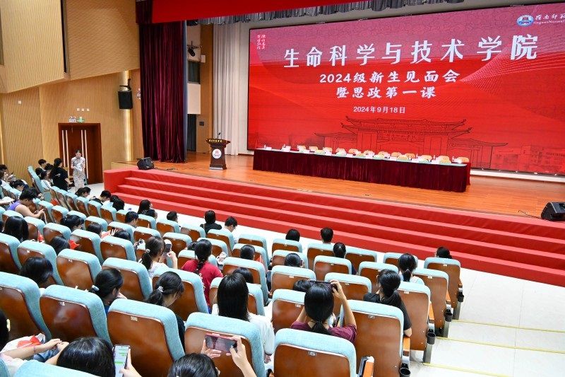 在金秋送爽、硕果累累的季节里,生科院于2024年9月18日晚,在音乐厅成功举办了一场别开生面的2024级新生见面会。生科院党委书记李发武,院长刘锴栋,副书记覃静君,副院长王锂韫,副院长孙余丹,各系主任、辅导员、新生班主任、老生代表及全体新生共同出席。