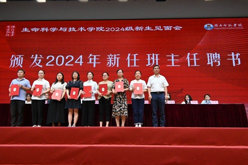 学院首先为2024级班主任颁发了聘书,同时表彰了在上一学年各类学科竞赛中表现突出的生科学子,祝贺他们斩获佳绩、为学院赢得了荣誉。生科院为2024级全体新同学赠送了一个笔记本,里面印有师兄师姐考研同学的寄语,鼓励他们勇攀高峰!