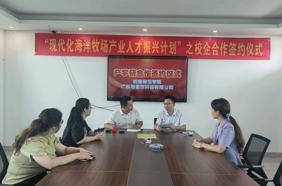 9月20日,生科院与广东粤晋然生物科技有限公司成功签订“现代化海洋牧场产业人才振兴计划”校企合作协议,双方就此次合作提出三点期望:一是希望双方合作能不断激发创新动力,产出有影响力的技术创新成果;二是希望不断深化双方合作交流,积极服务国家重大战略,支撑地方社会经济发展,为广东省“蓝色粮仓”添砖加瓦;三是希望以此合作为契机,提高产学研以及协同育人成效,将联合研究平台打造成为湛江本地高质量海洋牧场产学研合作典范。