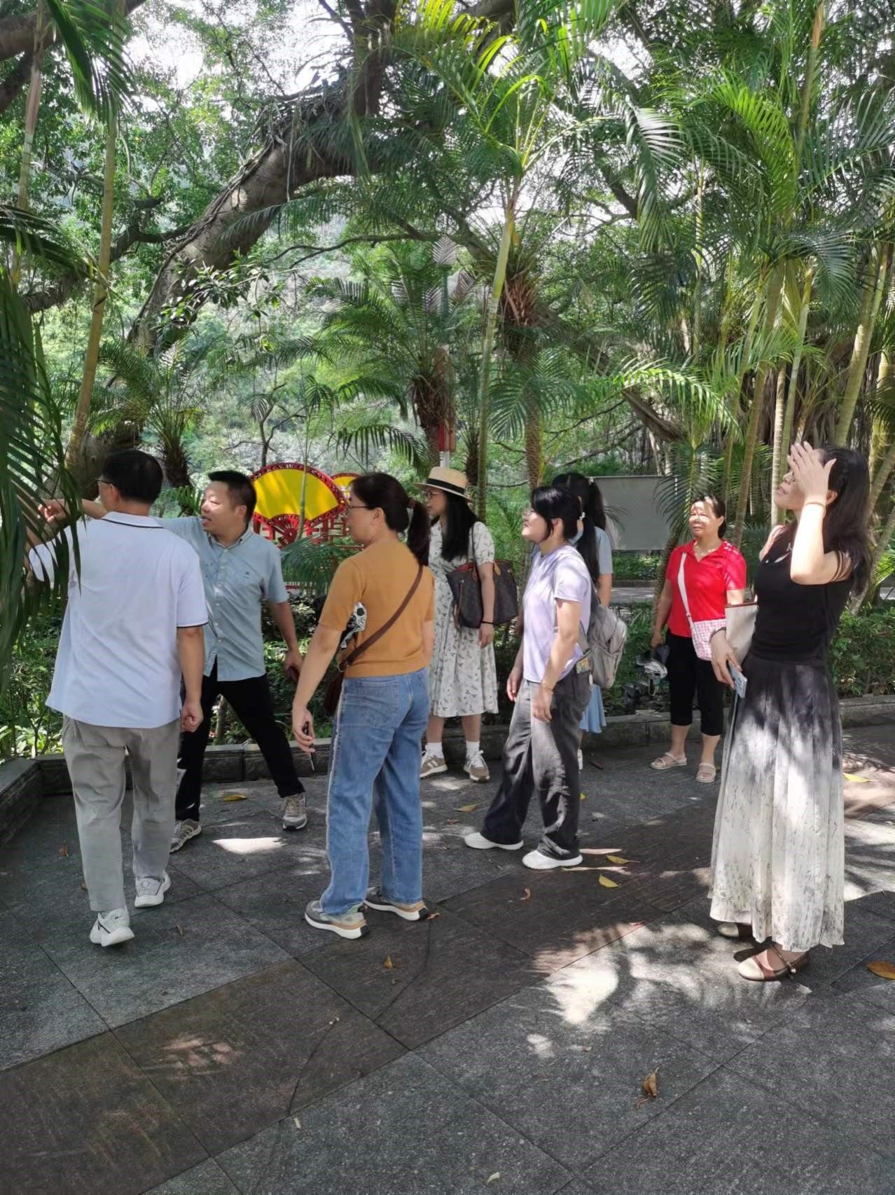 下午,全体学员前往江门圭峰山森林公园开展植物物种调研。江门市生物学教研员谢文龙的带领下,对圭峰山的植物进行了物种调研。谢文龙老师为学员们讲解当地特有植物,如蒲葵等生物学特征。