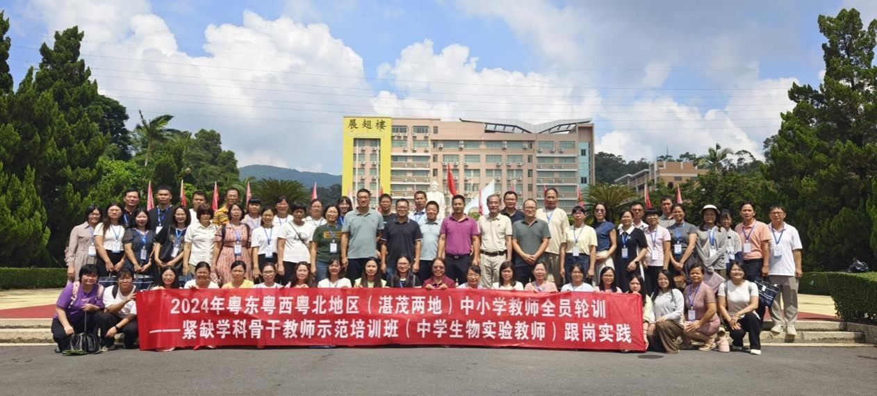 为了深入贯彻《广东省教育厅关于印发<广东省粤东粤西粤北地区中小学教师全员轮训实施方案>的通知》精神,进一步提升粤东粤西粤北地区(湛茂两地)中学生物骨干教师和生物实验教师的专业素养和教学水平,岭南师范学院生命科学与技术学院精心策划并组织了2024年度粤东粤西粤北(湛茂两地)中小学教师全员轮训——中学生物骨干教师示范培训和紧缺学科骨干教师示范培训(中学生物实验教师)项目。根据学员跟岗意向调研,分为两批,分别赴岭南师范学院和珠三角地区跟岗学习。该项目中的部分学员于2024年9月25日—29日踏上了前往珠海、江门的跟岗研修之旅。生科院院长刘锴栋教授、项目负责人余小杏老师跟队指导。