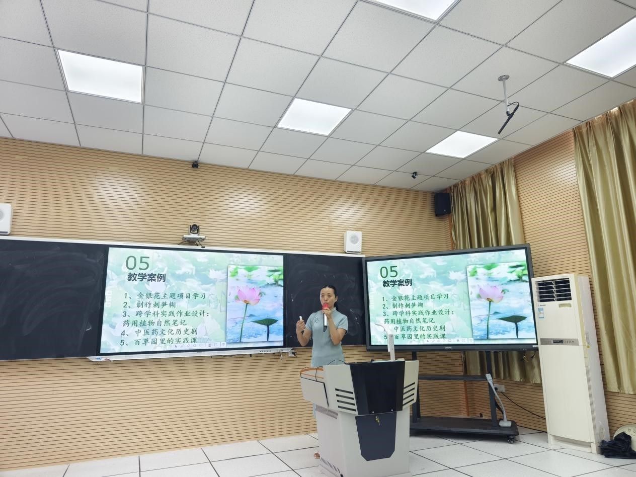 随后,珠海市第十中学生物科组长任志华老师主讲主题为《新课标背景下中医药文化主题跨学科实践初探》的讲座。任志华老师深入浅出的阐述了中医药学作为中华民族的瑰宝,蕴含着丰富的健康养生理念及实践经验,还分享了学生作品:文创制作、药用植物自然笔记和制作标本等。