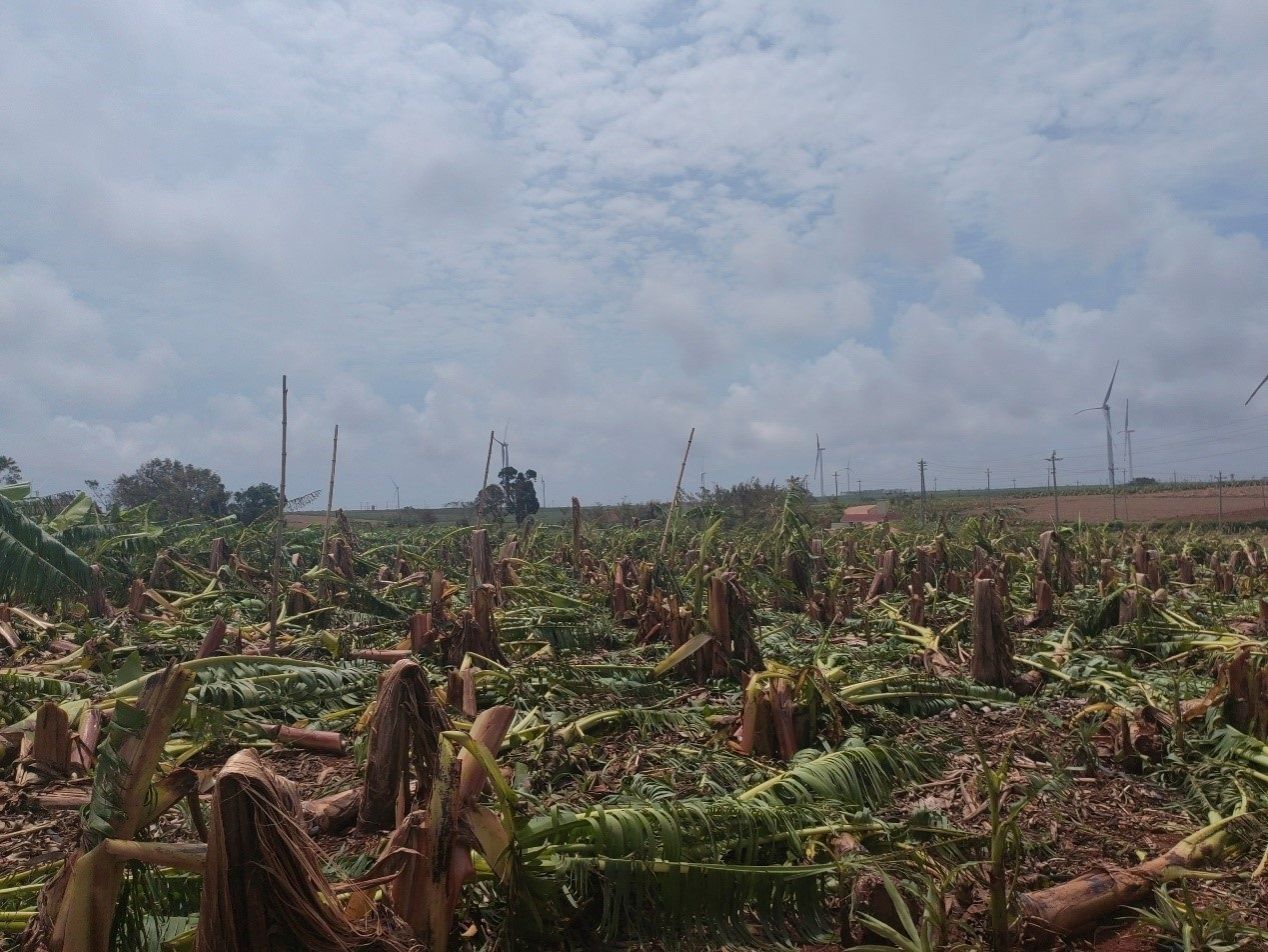 超强台风摩羯影响,徐闻香蕉、百香果、甘蔗、菠萝等大面积受灾,特别是香蕉,受灾面积超7万亩,大部分被拦腰截断,成片的香蕉林倒伏在地,几乎全军覆没。生科院农业科技特派员团队成员李晓菲老师深入田间地头查看灾情,积极对接徐闻县农业农村部门,协助编制台风暴雨后部分农作物生产技术指导意见,并现场指导农户积极采取措施救灾止损。
