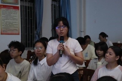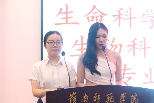 随后,两位学生代表依次上台发言。首先,22级生本1班的梁馨元同学作为老生代表,分享了自己对学校发展和专业优势的见解。她鼓励新生们设定清晰的目标,积极向党组织靠拢,并踊跃参与各类竞赛和实践活动,以此提升自身的学术水平和综合素质,实现个人成长与学业上的丰硕成果。紧接着,24级新生代表陈海琳同学发言,她将大学生活比作一个崭新的起点,强调了合理规划时间、勤奋学习的重要性,并呼吁同学们积极参与实践活动。她鼓励大家勇敢追逐梦想,书写属于自己的精彩人生篇章。