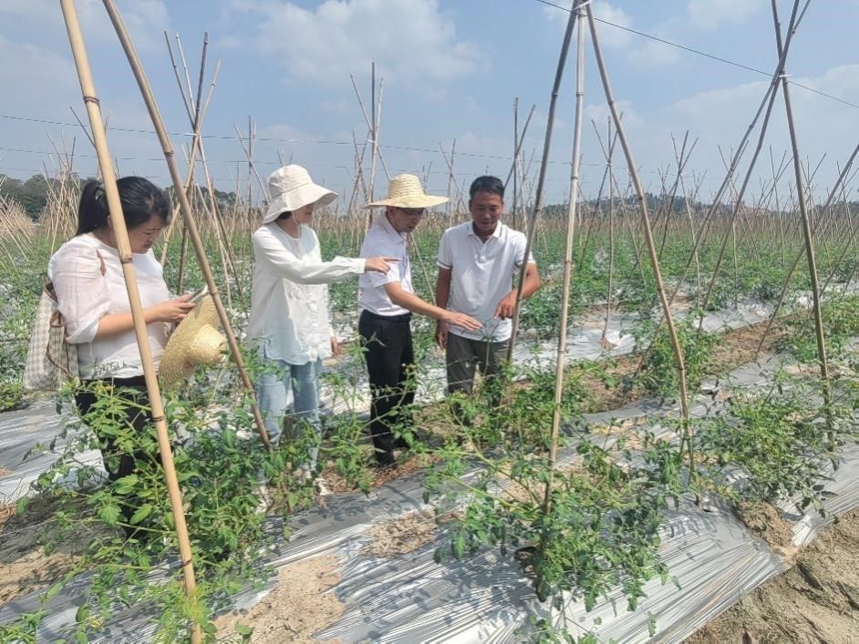 10月10日,生科院党委书记李发武、院长刘锴栋、专任教师张鸿雁、王子凡、卢翔、李晓菲等“轻骑兵”产业技术服务队一行深入廉江市石岭镇调研特色农业产业情况,并到田间地头指导种植户解决圣女果种植遇到的困难和问题,助力特色农业产业发展。