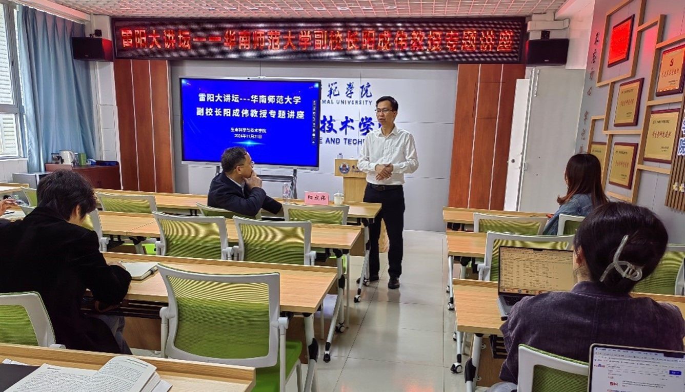 11月21日上午,生科院邀请华南师范大学副校长阳成伟教授作题为《硕士点建设及高水平项目申报指导》的专题讲座。生科院院长刘锴栋、副院长王锂韫、副院长孙余丹、生科院科研骨干参加讲座,讲座由生科院院长刘锴栋主持。