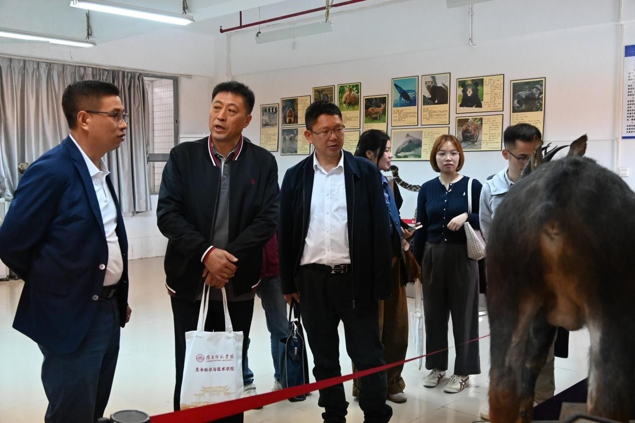 会后,李发武书记、刘锴栋院长等领导带领北部湾大学机械与船舶海洋工程学院领导老师参观我院的生物科普馆。在参观过程中,我院各位领导对生物科普馆内的各类生物标本、展示内容进行了详细讲解,让任才茂书记等来访人员对生命科学领域的知识有了更深入的了解。双方人员在参观过程中还就生物科普教育等相关话题进行了讨论,进一步加深了彼此间的了解。