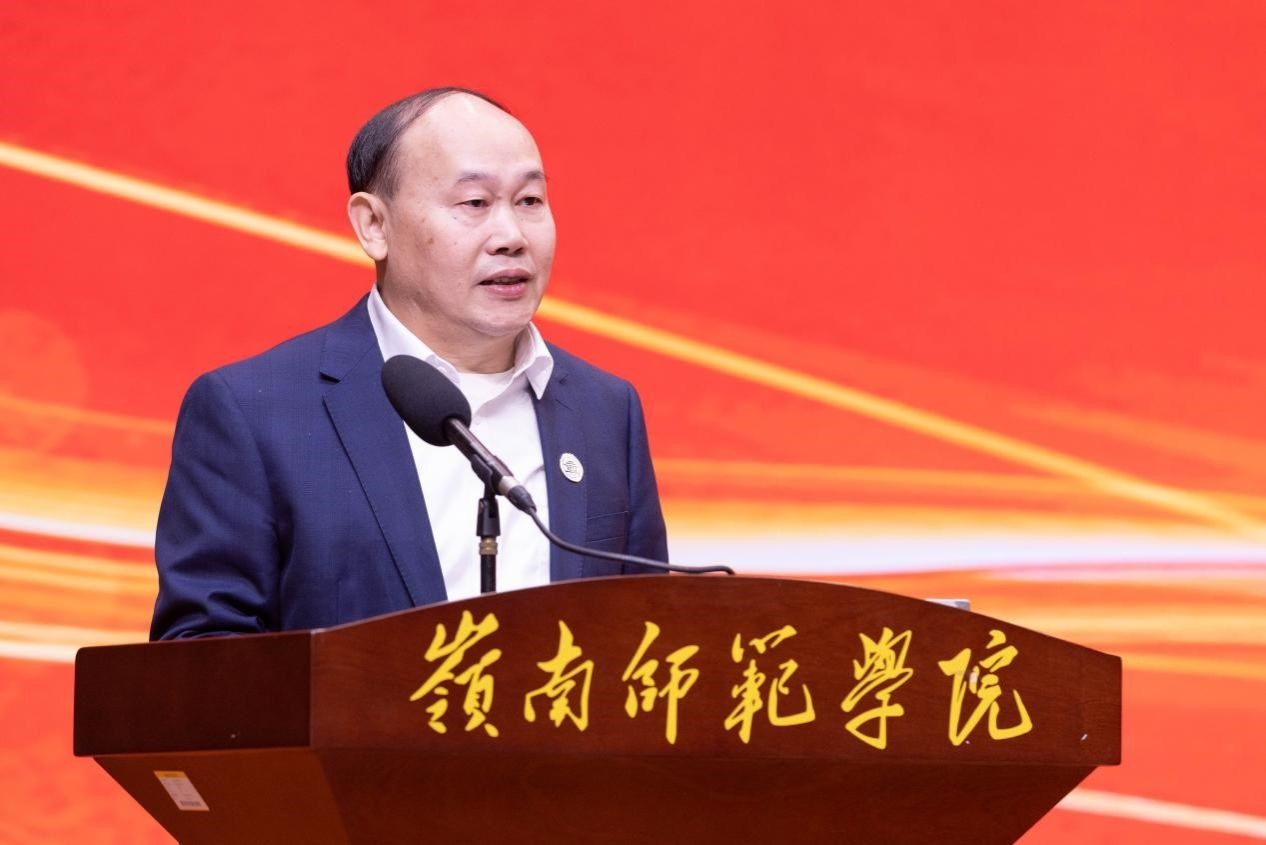 阳爱民代表学校向远道而来的刘少军院士、徐明岗院士表示热烈的欢迎和诚挚的感谢。他表示,湛江作为我国重要的海洋经济区和农业大市,拥有丰富的海洋资源和广阔的农业发展前景。近年来,湛江市委全会明确提出,要充分发挥湛江的海洋和农业资源优势,推动高质量发展。而岭南师范学院作为地方高等教育的重要力量,肩负着为区域经济社会发展培养高素质人才的使命。两位院士的莅临,不仅为学校带来了前沿的科研成果和创新思路,更为师范教育中如何服务湛江现代农业与海洋业发展提供了宝贵的意见。他强调两位院士的指导必将大力促进学校科研成果的转化与应用,助力地方经济的高质量发展,为地区发展贡献力量。