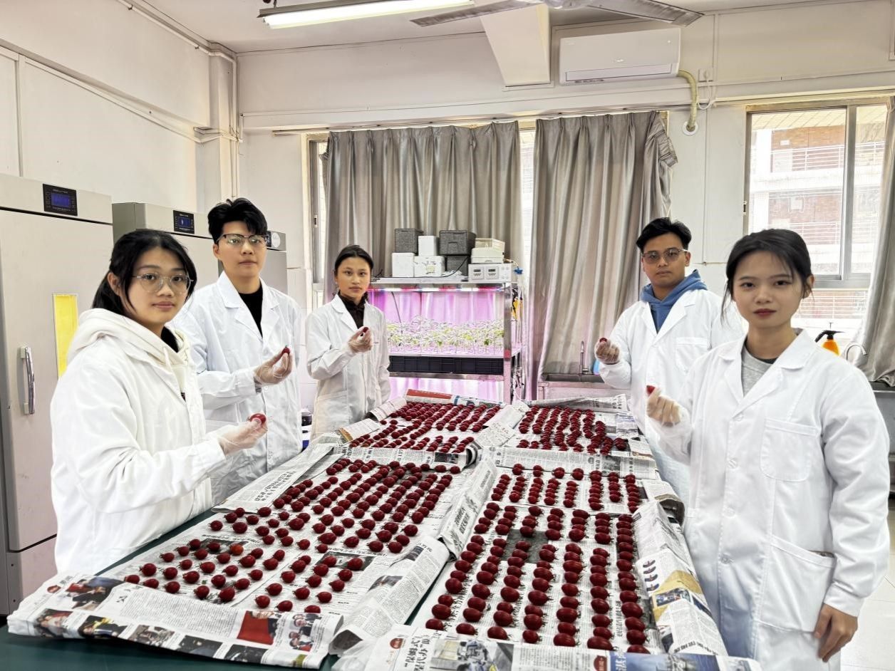 “绿动鲜机”项目研发了保鲜网袋、保鲜涂膜胶囊及果蔬保鲜剂三大产品。保鲜网袋采用天然提取物,具备减震和抗菌功能,延长果实贮藏期。涂膜胶囊基于壳聚糖、岩藻多糖和肉桂醛,具备pH响应控释和抗菌抗氧化性能,环保可降解。果蔬保鲜剂使用稳定态二氧化氯,广谱杀菌,减少营养流失,安全无毒。