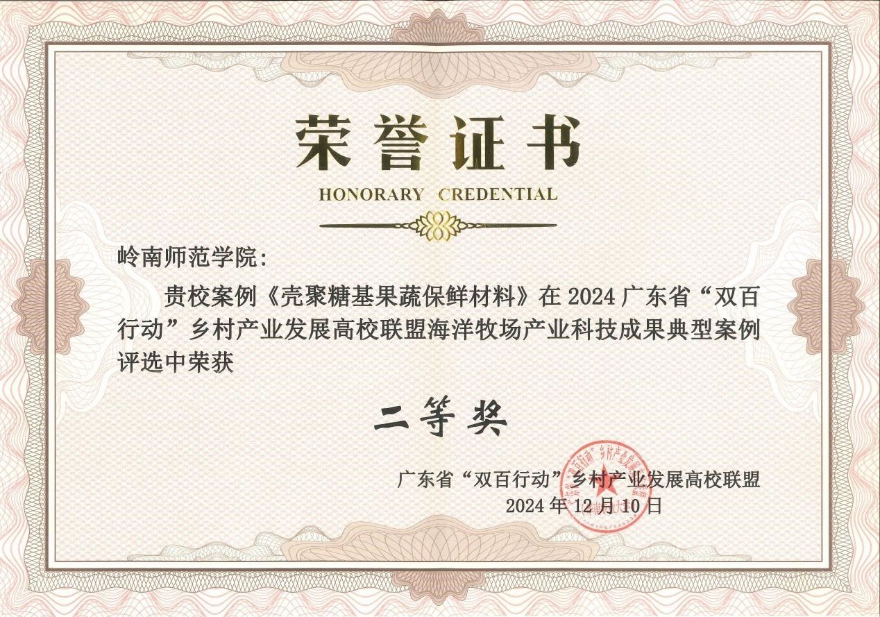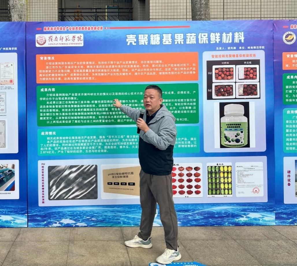 会上发布了一批2024年乡村产业发展高校联盟“培育海洋新质生产力 推动海洋牧场全产业链创新”典型案例,并以“展板+解说”的形式集中展示了联盟服务海洋牧场产业发展的标志性成果。我院海洋资源开发技术系专任教师梁凤颜团队的《壳聚糖基果蔬保鲜材料》荣获海洋牧场产业科技成果典型案例二等奖。