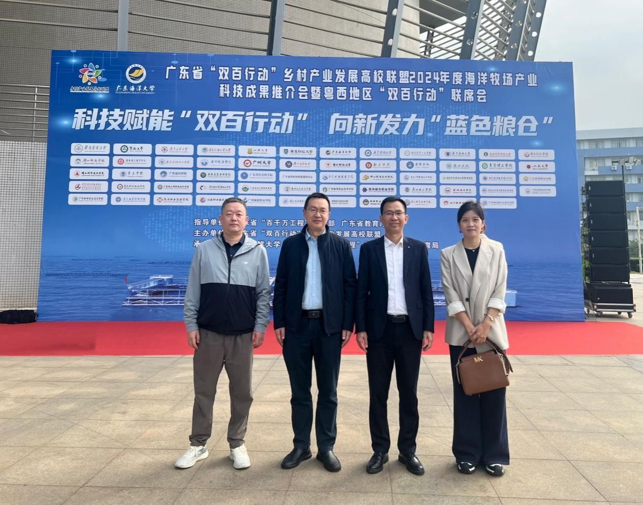 12月10日,广东省“双百行动”乡村产业发展高校联盟2024年度海洋牧场产业科技成果推介会暨粤西地区“双百行动”联席会在广东海洋大学举办。广东省科技厅、湛江市相关部门领导,省乡村产业发展高校联盟成员单位、各县区“双百行动”专班负责人、企业代表参加会议,共同推动优秀科研成果就地转化,汇聚科技力量助推“百千万工程”,为乡村产业高质量发展贡献智慧和力量。我校副校长金义富、生科院院长刘锴栋、生科院海洋资源开发技术系主任杨长庚、生科院海洋资源开发技术系专任教师谢瑞红参加会议。