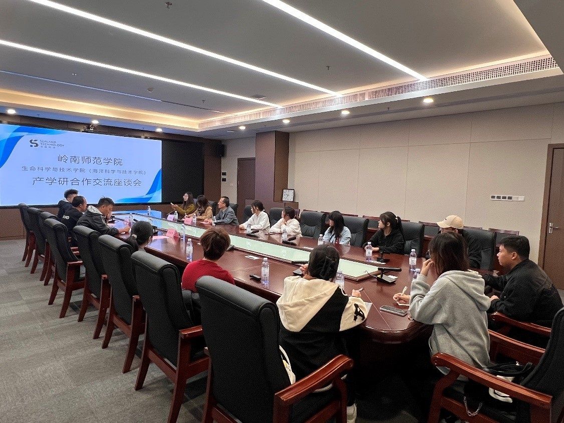 12月12日上午,生科院海洋资源开发技术专业教师及学生与广东深蓝海洋科技有限公司(以下简称“深蓝公司”)开展“双向赋能,共促发展”产学研合作交流。生科院副院长王锂韫、海洋资源开发技术专业重点实验室负责人吴应林副教授带队开展合作交流。