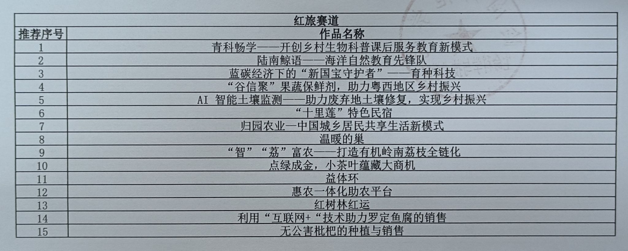 根据《岭南师范学院关于举办第九届中国国际互联网+”大学生创新创业大赛校赛的通知》规定,按照公平、公正、公开的原则,经学生申请、评审专家评审,现将我院第届互联网+大赛推送进校赛名单公示如下,公示日期为 2023 6 12 -2023 6 13日,共两天。如有异议请以书面形式或电话形式实名与欧老师联系,联系电话:0759-3183086。特此公示。