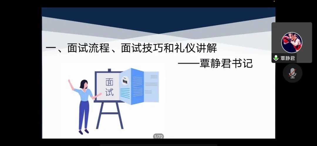 覃静君副书记表示在就业形势日益严峻的情况下,毕业生就业压力大,就业宜早不宜迟。为了让毕业生们提高面试的成功率,她针对当前就业情况向毕业生们介绍了面试流程,进行面试技巧和礼仪讲解,并向毕业生提出了以下几点建议。一是要重视校园招聘,对比社招的残酷竞争,校招对于应届毕业生是个很好的就业机会。二是要多参加面试,在多次的面试过程中累积应试经验。三是要保持积极乐观的心态,失败乃常态,切勿被失败的结果磨灭自信心。四是要多与老师,家长,同学进行沟通,缩小信息差,获取更多的就业渠道。最后,覃静君副书记还向毕业生们分享了如何化解面试中的遇到的尴尬状况。