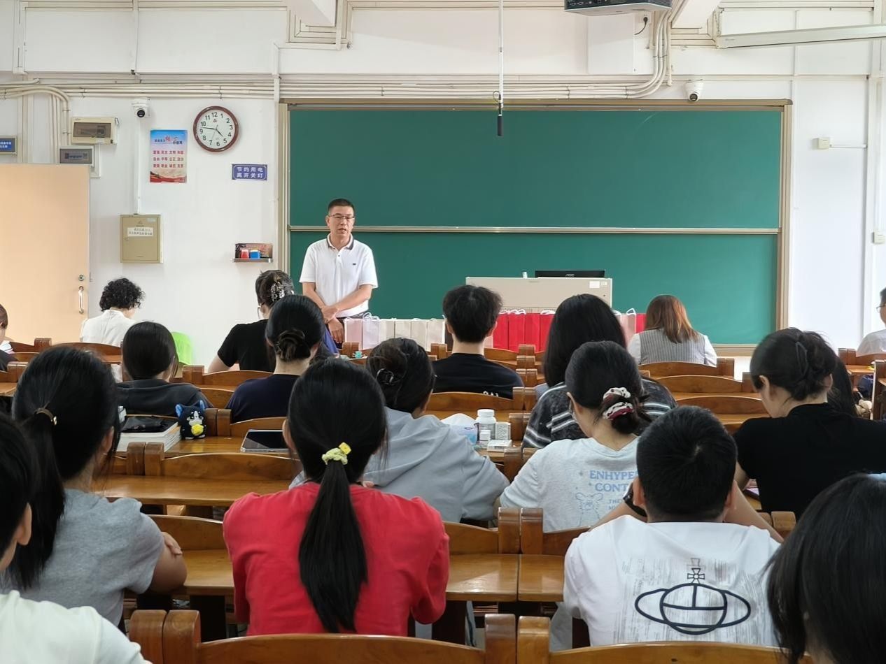 七月盛夏,骄阳似火,生科院2026届毕业生们留校奋战,全力冲刺升学深造。7月29日,生科院党委书记李发武,院长刘锴栋,党委副书记覃静君,副院长王锂韫,副院长孙余丹,行政副院长章晶晶及班主任袁柳娇代表学院来到考研教室,为留校学生送去暖心关怀与丰富慰问品 ,让大家在紧张备考中感受到生科院的关心与温暖。