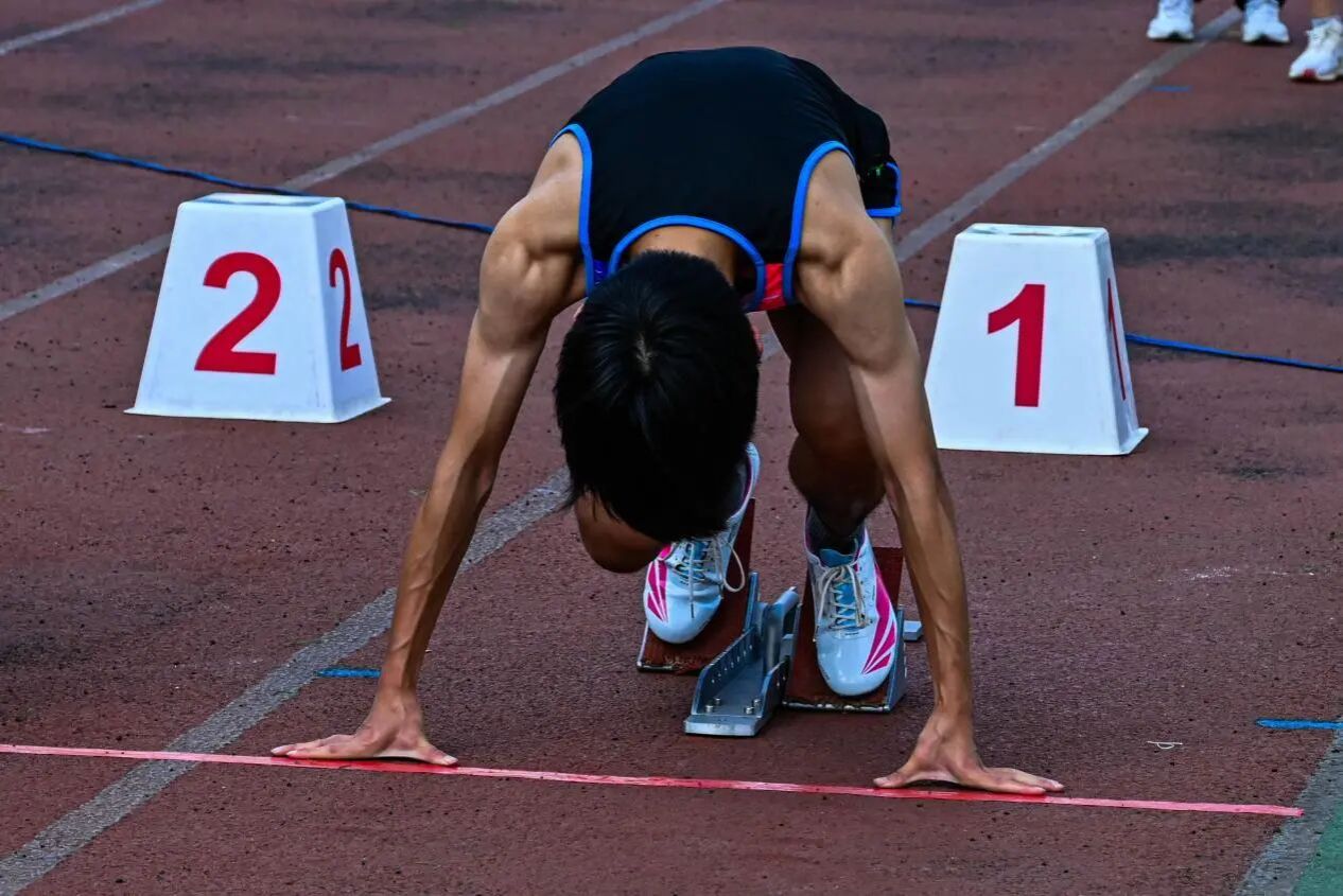 运动员黄源准备起跑