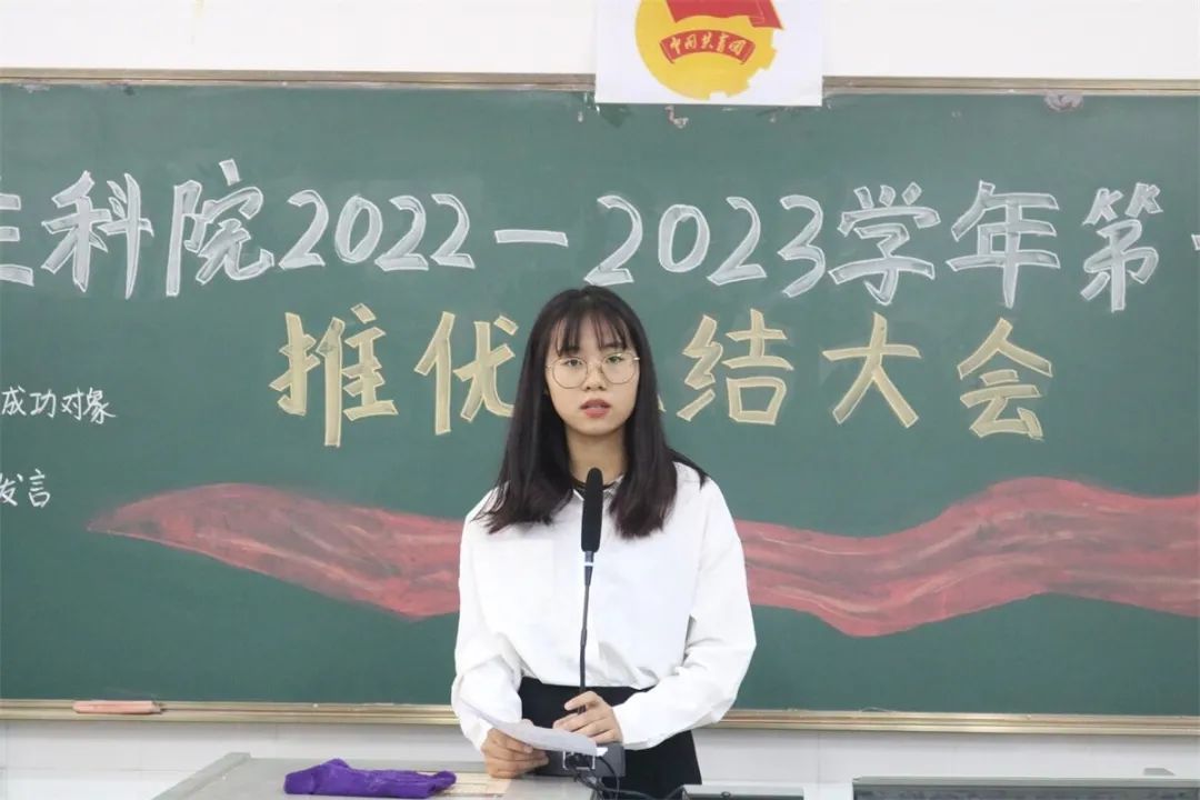最后欧斯艳老师对大会做总结讲话。欧斯艳老师首先对答辩环节中部分候选人对党的相关知识不熟悉以及入党申请书中出现错误的现象做出了严厉的批评,并表示成功推优候选人要端正自身的入党动机和入党思想,在大是大非面前保持头脑清醒;鼓励成功推优候选人除了要有思想上的进步还要加强专业知识的学习。不仅如此,欧斯艳老师还叮嘱大家应积极学习我们身边的优秀党员,始终以一名共产党的标准严格要求自己,做到吃苦在前,享受在后,努力向党组织靠拢。