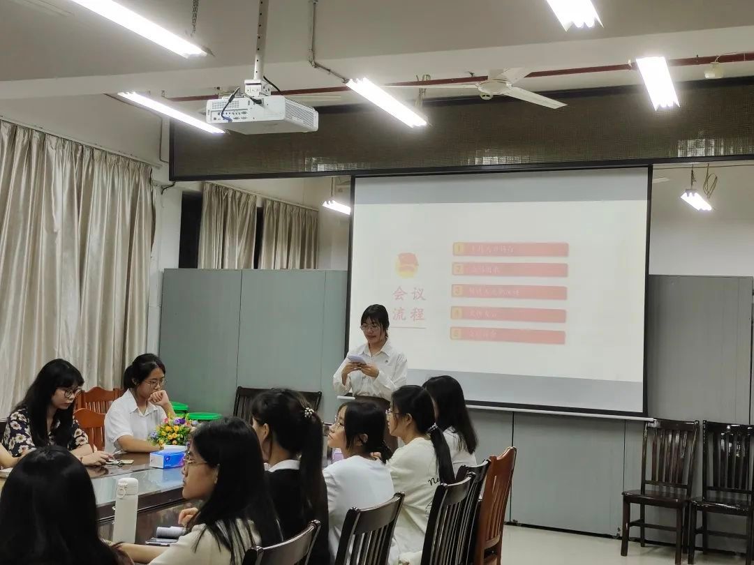 在主持人的宣布下,换届大会正式拉开帷幕。出席本次大会的成员有生科院团委书记欧斯艳,团委秘书长王建玉,团委副秘书长黄柳吟、罗弦咏、余晓君,勤工副秘书长黄春雨,友研中心负责人吴佳晓,心辅站秘书长关佩琳,党建副主任陈晓阳,就服负责人易翠平及团委各部门部长。