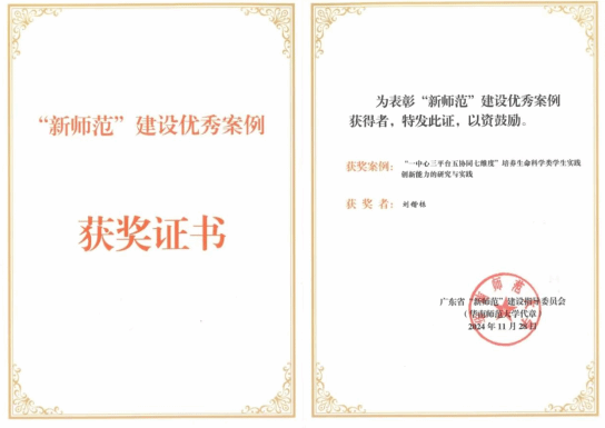 喜报!生科院学生实践创新能力的研究与实践案例荣获广东省“新师范”建设优秀案例