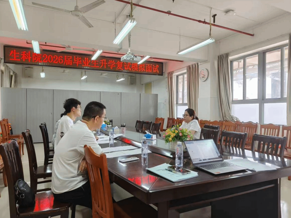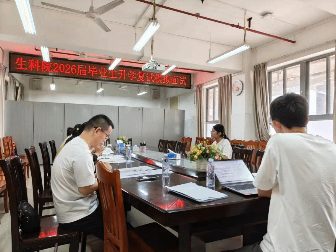本次升学深造模拟复试会议通过精细化场景设计与多维度能力锤炼,不仅缓解了学生的“复试焦虑”,更将生科学子的专业素养与应变能力转化为核心竞争力。生科院始终坚持以“生”为本,未来,学院将继续加强与学生沟通交流,持续跟进学生复试进展,深入了解学生的需求,不断完善考研帮扶体系,通过复试指导、经验分享、一对一答疑等多种形式,为学子们研途保驾护航,助力更多学子实现考研梦想。