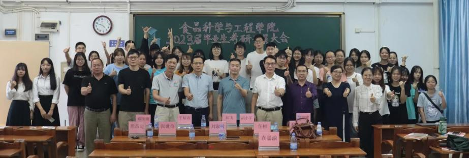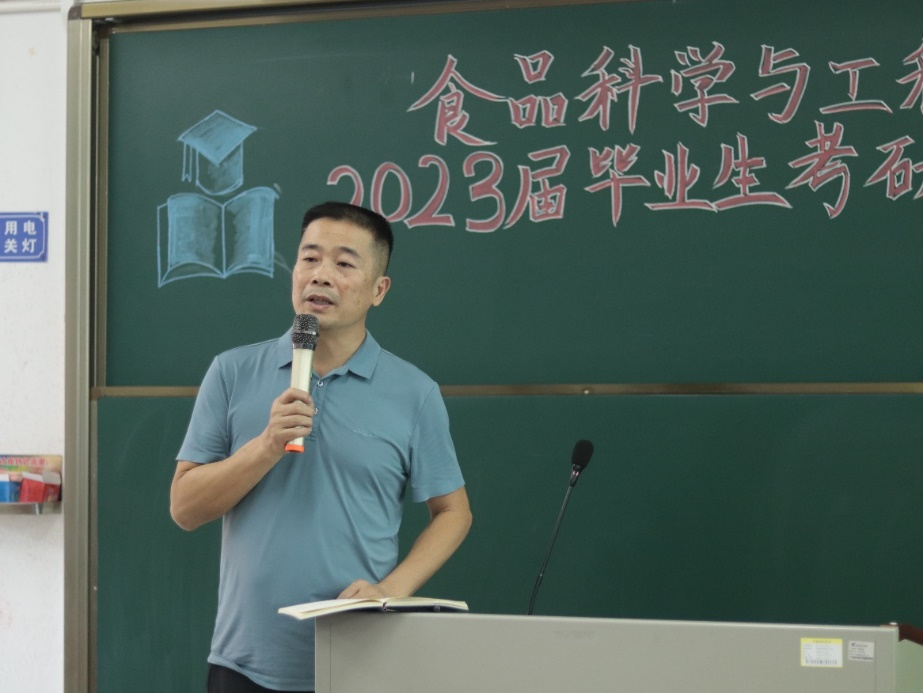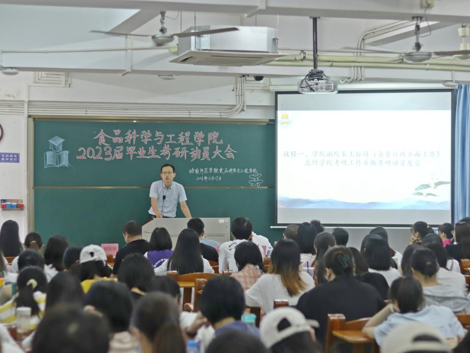 11月7日下午,食品科学与工程学院于弘雷楼703室举办2023届毕业生考研动员大会。出席本次会议的嘉宾有学院党委书记邱飞、负责行政全面工作副院长王标诗、副院长胡小军、正级处辅导员郑侯锦、食品工程系主任张世奇、食品安全系主任刘淑敏、19级各班班主任韩志萍,熊昌定及任彬老师,辅导员袁嘉渝及研越考研机构代表何海啸。会议由20级食品1班李缘君及食品2班冯思怡主持。