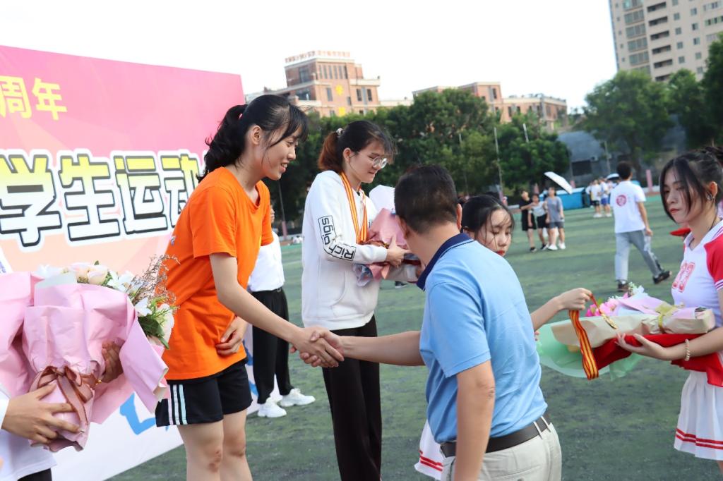 举枪示意,枪响而出,运动员们严阵以待,决胜赛场铆足着劲,只为夺冠。谢彩静如同飞一般的冲出,各学院的呐喊声不绝于耳,她只专注于奔向终点,喜获冠军。赛后谢彩静表现得格外高兴,她坚定地说到自己的目标一直是冠军,也只往冠军方向想。光鲜亮丽的成功背后总离不开刻苦的努力,为积极应对校运会比赛,她从十月中旬就开始训练,每天中午跟随教练从12点到1点,高抬腿、蛙跳、50米短跑等是训练的日常项目,由于时间紧迫,午餐只能通过盒饭或糖水应对,她坦言训练过程辛苦而充实。逐梦路上,纵使有荆棘满地,亦甘之如饴。