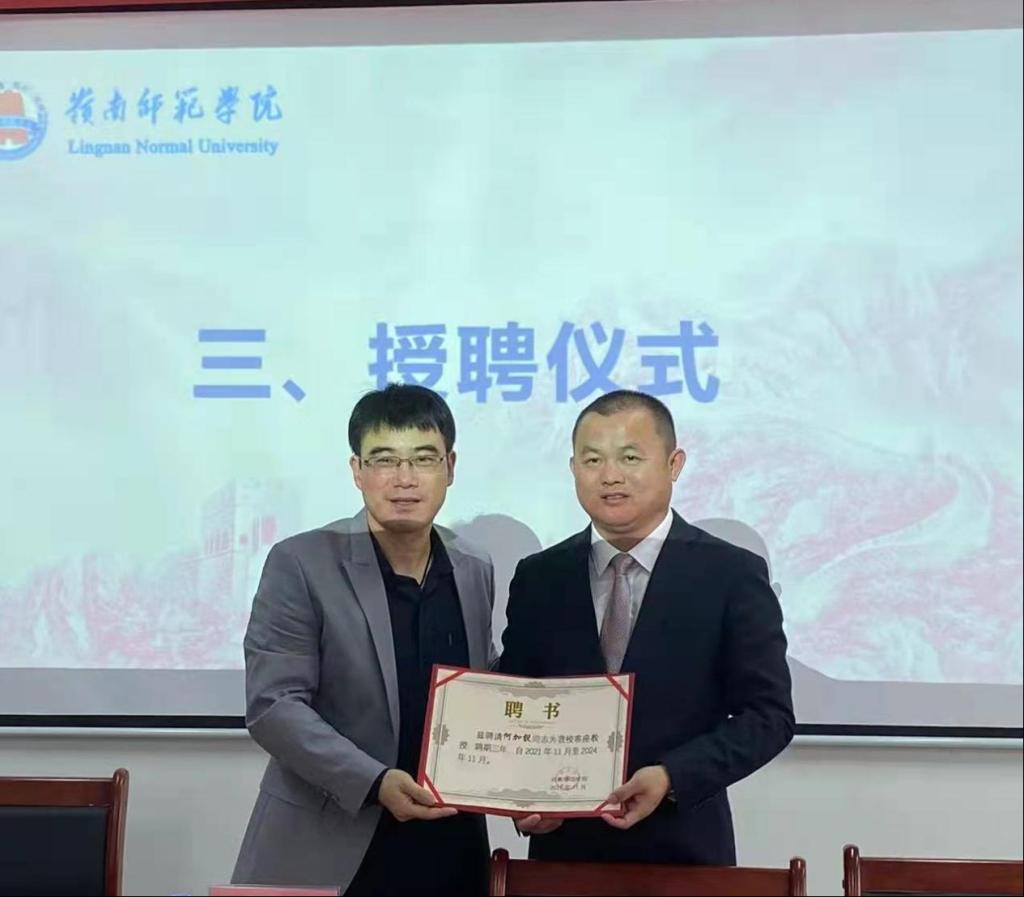 为深化人才培养体系建设,推动学院办学事业高质量发展。11月16日下午,食品科学与工程学院于第五教学楼B318举行客座教授聘任仪式,聘请深圳鼎和盛集团公司董事长何加锐为学校客座教授。出席聘任仪式的人员有岭南师范学院副校长戴黍教授、食品学院党委书记邱飞、负责行政全面工作副院长王标诗博士、副院长胡小军及学院师生代表。聘任仪式由王标诗主持。