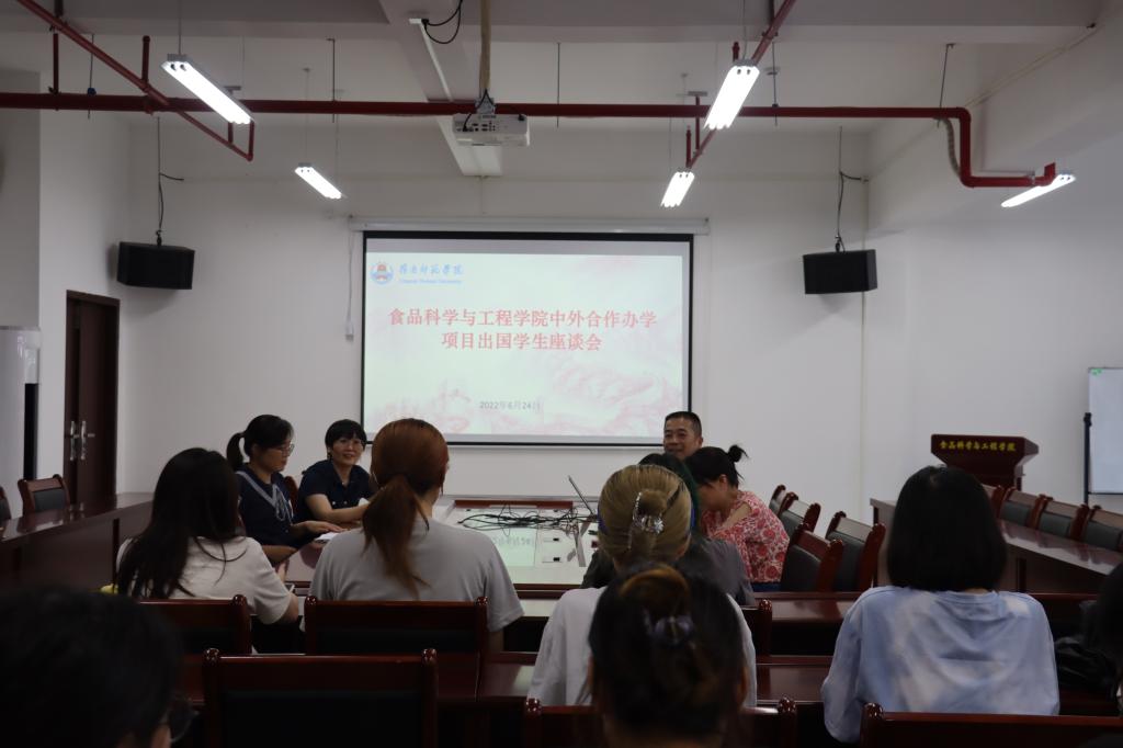 6月24日下午,食品科学与工程学院于第五教学楼B栋318室召开中外合作办学项目出国学生座谈会,出席本次会议的有党委书记邱飞、副书记刘淑芬,20级、21级烹饪国际班班主任黄亚芬与李恒以及辅导员袁嘉渝、林煜乾、周晓诗。会议由刘淑芬主持。
