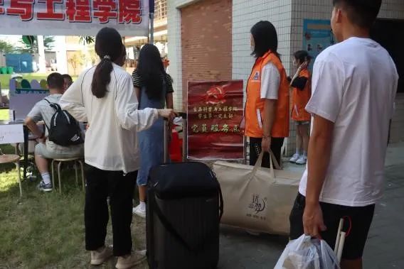 党支部组成党员志愿服务队,在迎新报到处设立了“党员服务点”,聚焦服务保障和宣传教育,为广大新生提供了细致周到的入学报到服务。随着迎接新生的大巴一辆辆驶入校园,在来自全国各地的新生走下大巴时,党员志愿者们立即上前,引导新生办理报到手续,帮助新生搬运行李,在去往宿舍的路上,热情地向他们介绍校园人文环境,解答他们的疑问,让新生更好地融入到新环境中来。烈日炎炎,党员志愿者的衣服早已湿透,但他们的热情丝毫不减,坚守岗位,服务着每一位新生。